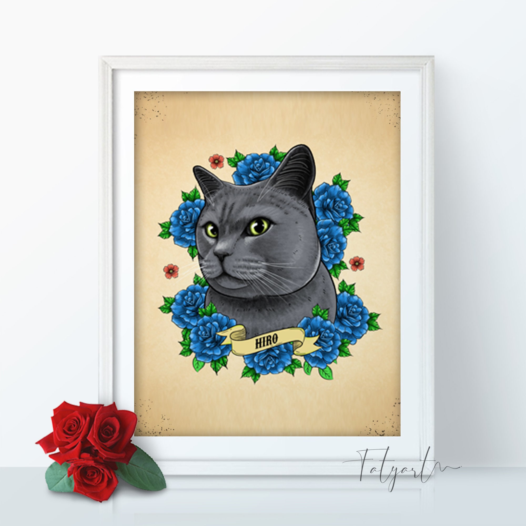 Custom Neo Traditional Tattoo Pet Portrait With Flowers For Etsy Uk